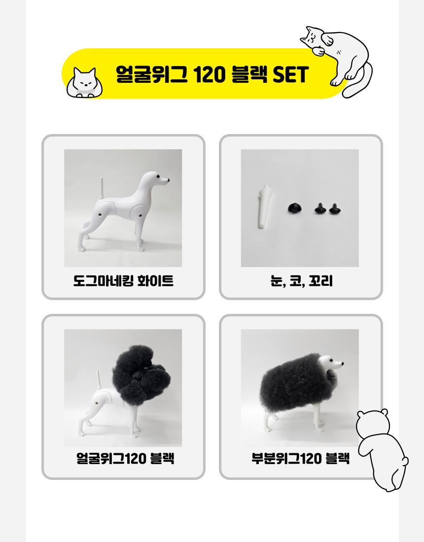펫마스터/견체(화이트)+얼굴위그(블랙)+부분위그(블랙)